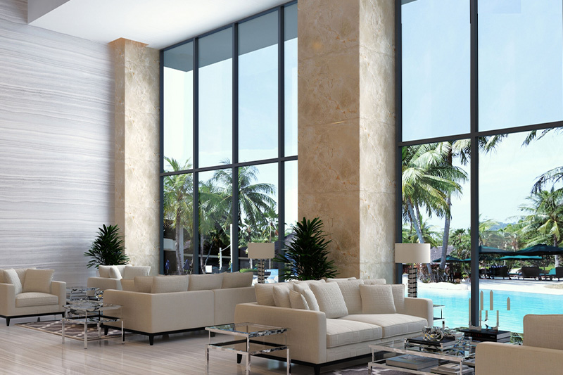 間にある真空層が熱を通さないため、一般的な1枚ガラスと比べ、約4倍の断熱性能があります。快適な室温を外に逃がさず、結露の軽減することで清潔な室内空間が実現します。